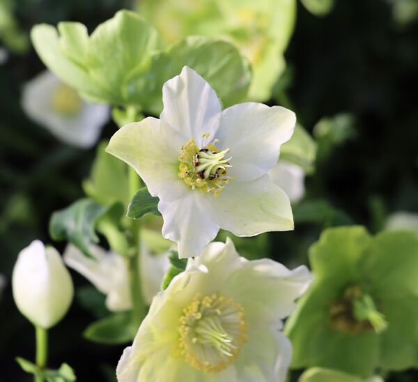 Helleborus will grow to be about 10-12 inches tall at maturity extending to 12-18 inches tall with the flowers, with a spread of up to 20-24 inches. When grown in masses or used as a bedding plant, individual plants should be spaced approximately 18 inches apart. Its foliage tends to remain dense right to the ground, but will allow lower plants in front. It grows at a medium rate, and under ideal conditions can be expected to live for approximately 10 years. This plant does best in partial shade. It is very adaptable to both dry and evenly moist conditions, but will not tolerate standing water. It is not particular as to soil type or pH. It is highly tolerant of urban pollution and will even thrive in inner city environments. This particular variety is an interspecific hybrid. It is typically propagated from seed; however, as a cultivated variety, be aware that it may be subject to certain restrictions or prohibitions on propagation. Helleborus is a fine choice for the garden, but it is also a good selection for planting in outdoor pots and containers. It is often used as a 'filler' in the 'spiller-thriller-filler' container combination, providing a mass of flowers against which the larger thriller plants stand out. Note that when growing plants in outdoor containers and baskets, they may require more frequent waterings than they would in the yard or garden.